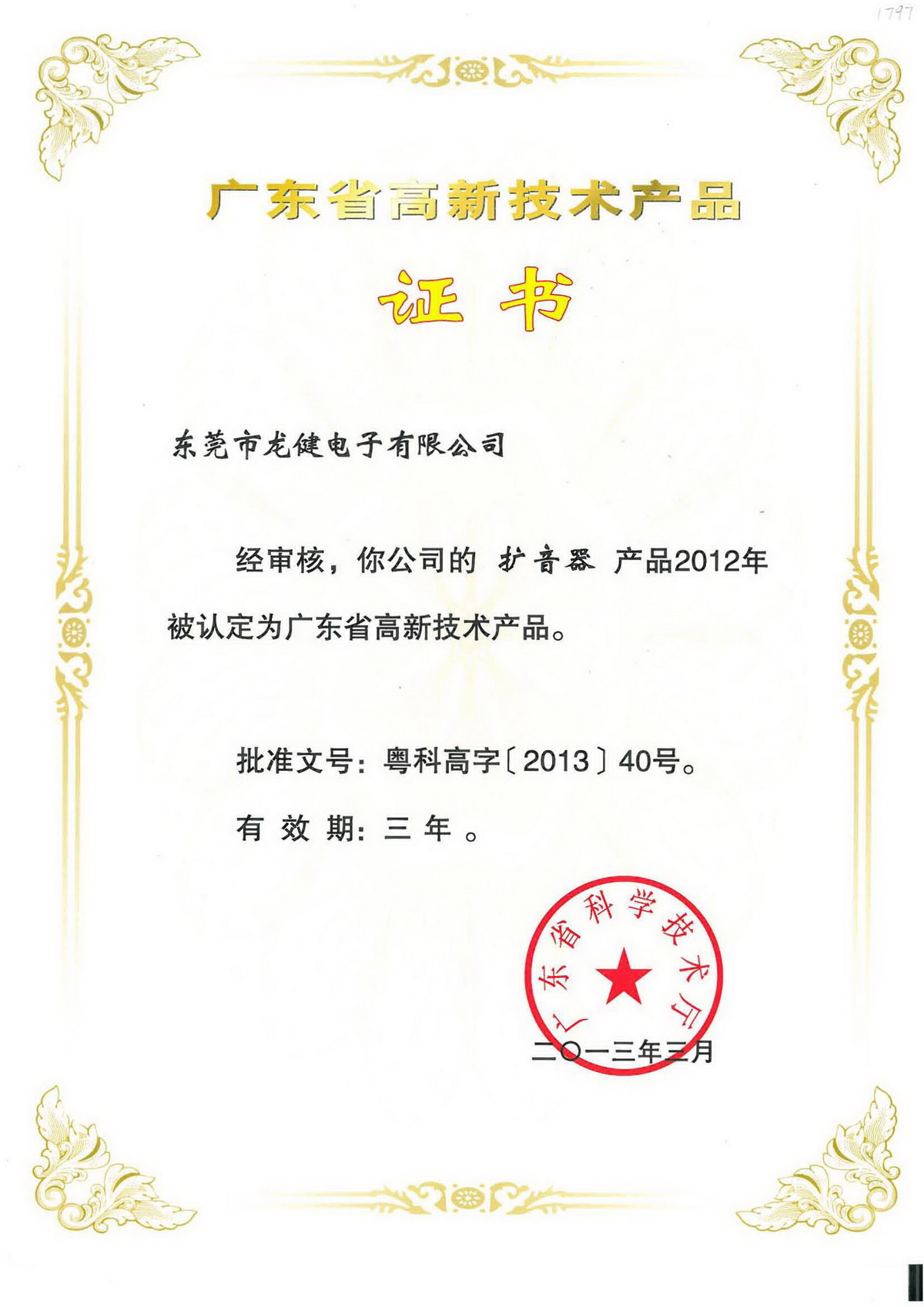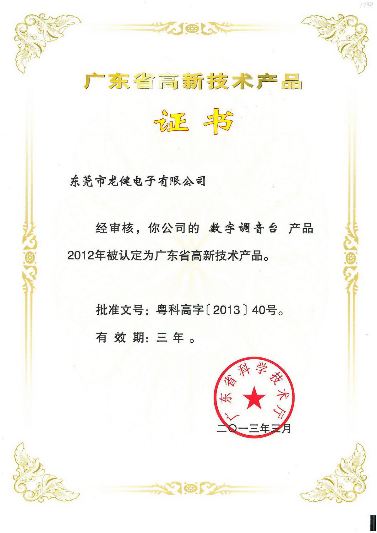 | 高薪技術(shù)產(chǎn)品證書-擴(kuò)音器 | 高薪技術(shù)產(chǎn)品證書-數(shù)字調(diào)音臺 |
