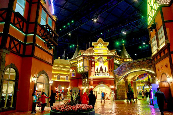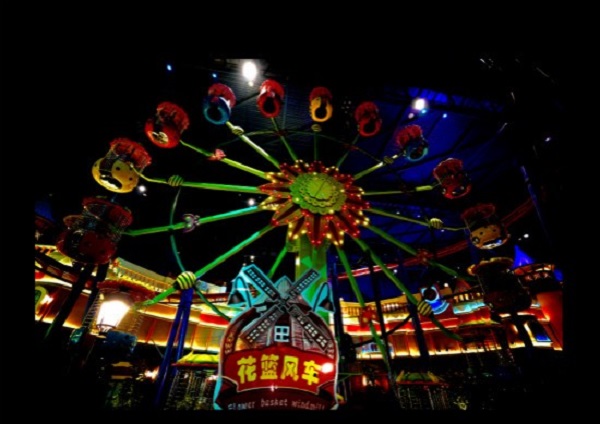 室內主題樂園建筑面積2.4萬平方米,高度30米,引進13種世界一流的游樂設施,包括世界唯一定制的室內飛行過山車,大擺錘,十分驚險刺激?!笆覂蕊w行過山車是一個讓人與人之間可以互動的游戲項目,運行時一批游客在上面,另一批在下面,可以用玩具槍互相射擊,我們稱之為‘??沾髴?zhàn)’。室內滑冰場按照世界一流標準建設,既可以舉辦國際大賽,又可以供市民休閑健身。主題樂園分兩個區(qū)域,其中德式小鎮(zhèn)區(qū)分布著嘉年華游戲、泡泡秀館、真人CS、古堡驚魂……德魯特小店和魔法商店也在這里,可以買紀念品和裝飾品。