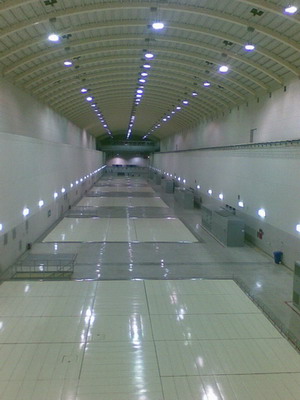 二灘工程擁有亞洲最大的地下廠房洞室群。由廠房、主變壓器室、尾水調(diào)壓室三大洞室及壓力管道、尾水管、尾水洞、母線洞、交通洞、通風(fēng)洞、排水洞(廊道)、進(jìn)風(fēng)豎井、排風(fēng)豎井、電梯豎井、電纜斜井等組成龐大洞室群。地下洞室開挖量370萬立方米。其中,廠房長280米、寬25.5米、高65米。