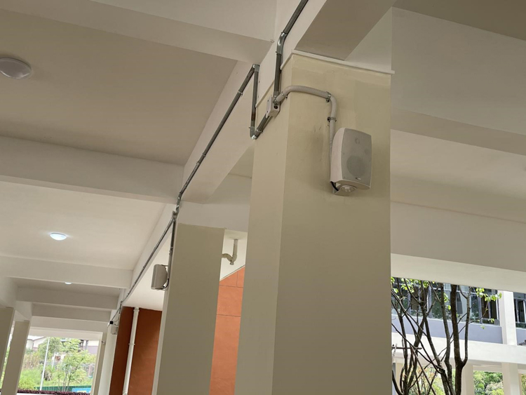 走廊采用網(wǎng)絡(luò)功放和多功能時(shí)款音箱的組合,可直接播放來自網(wǎng)絡(luò)的音頻信號(hào),無需另外的網(wǎng)絡(luò)解碼前置器,平時(shí)可用于播放輕松愉悅的背景音樂,減少環(huán)境噪聲,給學(xué)生營(yíng)造更舒適的環(huán)境氛圍。