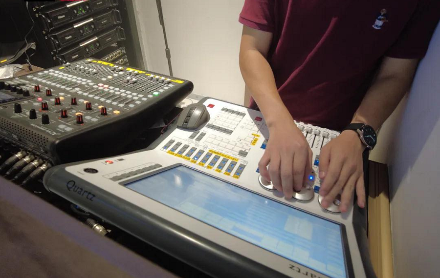 1臺調(diào)音臺、擴(kuò)聲周邊設(shè)備、音源播放設(shè)備、話筒、監(jiān)聽音響、電源時序器左右兩串線陣(8只線陣全頻音箱+2只線陣低音音箱)、2只低音音箱、2只返聽揚(yáng)聲器、6只環(huán)繞揚(yáng)聲器及與之功率相匹配的功率放大器組成。