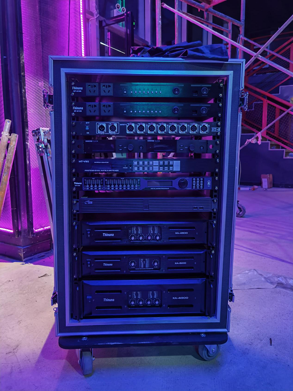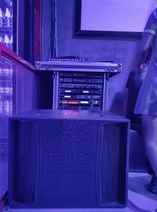 多方考量之下,最終部署了由DEKEN FLEX T15全頻揚聲器主擴,DEKEN STAGE M12揚聲器作為舞臺返送,場內(nèi)的超低頻揚聲器選用 DEKEN FLEX T18S 大功率超低,DEKEN FLEX T10 全頻揚聲器作為酒吧補聲。整體擴聲系統(tǒng)通過 Thinuna 專業(yè)功放提供驅(qū)動力,周邊設備如調(diào)音臺、音頻處理器、電源時序器等設備為Thinuna產(chǎn)品。實現(xiàn)整個空間內(nèi)聲音清晰又均勻地覆蓋,低音震撼有力,能量滿滿。