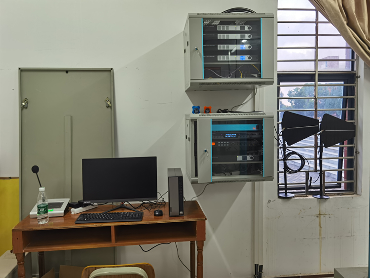 另外我們專門為校園電臺配置專業(yè)級播音話筒UR-232A一套、前級處理器KP-100一臺以及音源管理一體電腦一臺,可以做到將廣播與音樂同步或者分路播出。