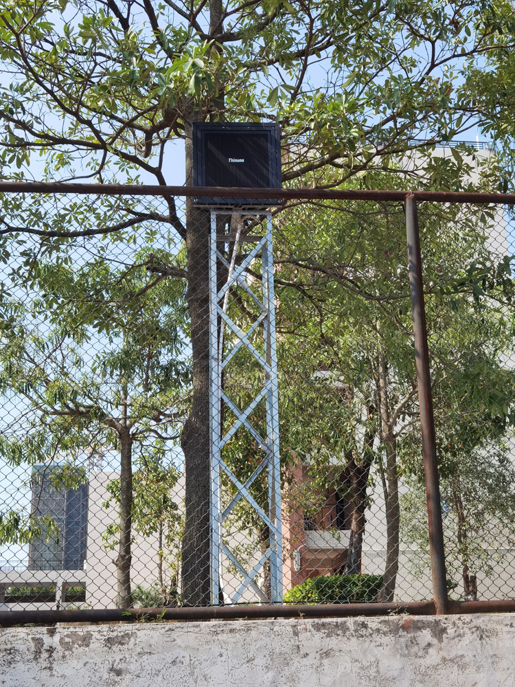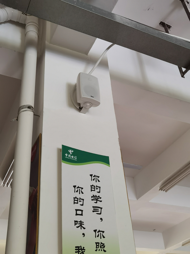校園有2個飯?zhí)茫?棟學生宿舍和1棟行政樓,每棟大樓都要求需要有室內(nèi)廣播,我們設計飯?zhí)酶姓鞘覂?nèi)公共區(qū)安裝Thinuna的FS以及WS系列壁掛音箱廣播擴音,考慮到學生宿舍內(nèi)有露天中庭,決定在宿舍走廊柱子壁掛Thinuna的6系列大功率室外音柱,120W的大功率音柱采用壽命極長的堅固鋁合金外殼,抗腐蝕能力強,內(nèi)部喇叭單元選用8寸低音及1寸高音號角構造搭配,聲壓強勁,音效飽滿,是所有室外露天場所的理想選擇。