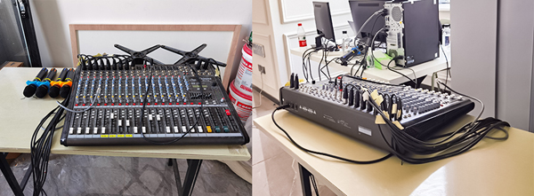 在拾音傳聲器的配置方面,系統(tǒng)配置了4套無線手持話筒和2只電容鵝頸話筒。上述傳聲器均為單方向心型產(chǎn)品,其特點(diǎn)是靈敏度高,不易產(chǎn)生嘯叫。