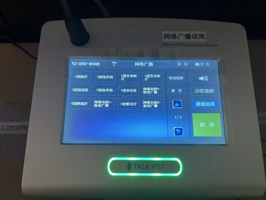 本項(xiàng)目廣播系統(tǒng)還配置網(wǎng)絡(luò)尋呼話筒IP-9633RM III, 實(shí)現(xiàn)營(yíng)銷工作人員對(duì)營(yíng)銷中心進(jìn)行通知講話和廣播尋呼。該尋呼話筒具備線路輸入口,可向網(wǎng)絡(luò)傳送本地音頻信號(hào),由此還兼容本地音頻信號(hào)采集播放滿足營(yíng)銷人員臨時(shí)播放音頻和歌曲等需求。