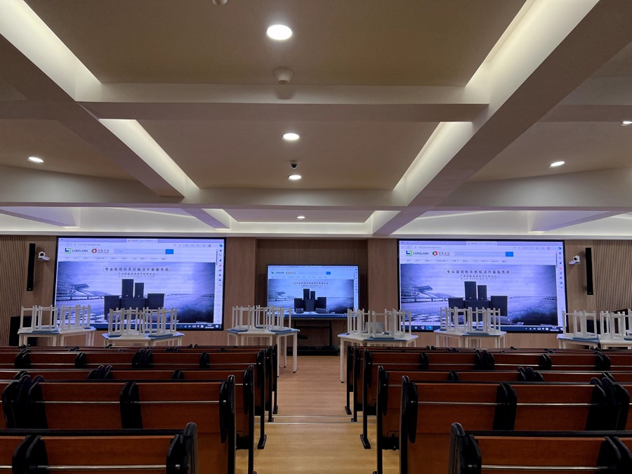 廣州市番禺區(qū)香江育才實驗學(xué)校,學(xué)校規(guī)模較大,學(xué)生數(shù)量眾多。然而,由于多功能階梯教室內(nèi)的聲音傳遞效果不佳,部分學(xué)生經(jīng)常無法聽清老師的講解;同時,學(xué)校也希望再授課時能夠錄制的教學(xué)內(nèi)容并可儲存上傳服務(wù)器,以便學(xué)生日后能夠反復(fù)學(xué)習(xí);此外,學(xué)校還希望能夠在多功能階梯教室內(nèi)配置LED大屏,用于播放授課教學(xué)PPT以及教學(xué)視頻等內(nèi)容。
