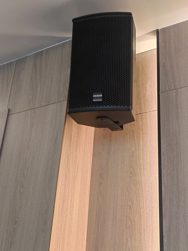 主擴(kuò)聲音箱:選用 DEKEN FLEX T10 專業(yè)音箱,分別吊裝在大屏兩側(cè),能夠?qū)⒙曇艟珳?zhǔn)投射到聽眾區(qū)域,減少聲波在天花板和地面的反射,從而有效降低回聲和混響對聲音清晰度的影響。根據(jù)會議室的長度和寬度,調(diào)整音箱的角度,確保聲音均勻覆蓋整個(gè)聽眾席。天花板均勻嵌入 4 只 Thinuna GS-8CT 超高品質(zhì)同軸天花輔助揚(yáng)聲器,用于補(bǔ)充主擴(kuò)聲音箱在聽眾席邊緣和后排區(qū)域的聲音覆蓋。這些輔助音箱與主擴(kuò)聲音箱協(xié)同工作,使整個(gè)多功能廳的聲壓級更加均勻,避免出現(xiàn)聲音 “死角”,確保聲音在整個(gè)空間均勻分布。所匹配的功放分別為:XA -4600 一臺、XA - 800 一臺。這一系列的匹配操作嚴(yán)格依照阻抗匹配原則進(jìn)行。功率放大器采用高效率、低失真的設(shè)計(jì),能夠?yàn)橐粝涮峁┏渥愕墓β手С?,確保聲音在大動態(tài)范圍內(nèi)保持清晰、不失真。每臺功率放大器與對應(yīng)的音箱之間通過專業(yè)音頻線纜連接,采用平衡傳輸方式,減少信號傳輸過程中的干擾。