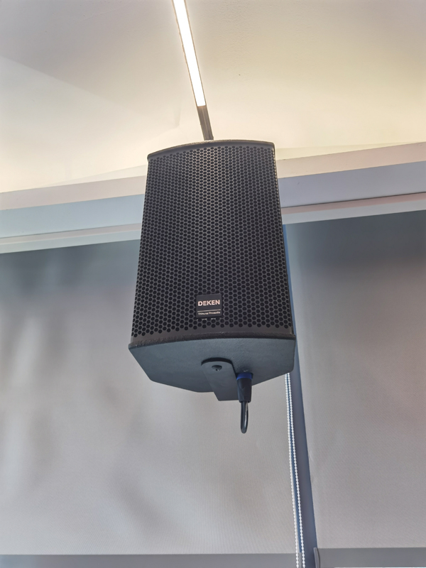 針對場地?cái)U(kuò)聲部分,設(shè)計(jì)師根據(jù)會議室的面積和座位布局,選擇采用2只DEKEN的10寸全頻音箱作為主音箱,放置在會議室的前方兩側(cè),確保聲音能夠覆蓋整個會議前中場區(qū)域;同時(shí)在會議室的后方兩側(cè)墻上壁掛安裝2只DEKEN的8寸全頻音箱布置輔助補(bǔ)聲音箱,補(bǔ)充后場的聲壓均勻分布。結(jié)合Thinuna品牌具備澎湃輸出功率和高度穩(wěn)定性的XA系列專業(yè)功率放大器,以保障音箱的正常工作。Thinuna品牌MX系列的十六路模擬調(diào)音臺搭配DAP系列的數(shù)字音頻處理器作為系統(tǒng)控制端,性價(jià)比高,配套性強(qiáng);采用革命性的音頻處理技術(shù)進(jìn)行音頻控制及處理,多功能集成化,計(jì)算機(jī)調(diào)試,可以預(yù)存各種使用模式(如各種報(bào)告會模式、會議模式等),數(shù)字處理化、多功能集成化、精度高、性能好、可靠性高并大大的降低了系統(tǒng)的故障率,避免了各離散設(shè)備的噪聲疊加,節(jié)約資金,調(diào)用方便、操作簡單、避免誤操作,實(shí)現(xiàn)對整個擴(kuò)聲系統(tǒng)信號的調(diào)度與處理,提升系統(tǒng)的穩(wěn)定性和音質(zhì)的保真度。