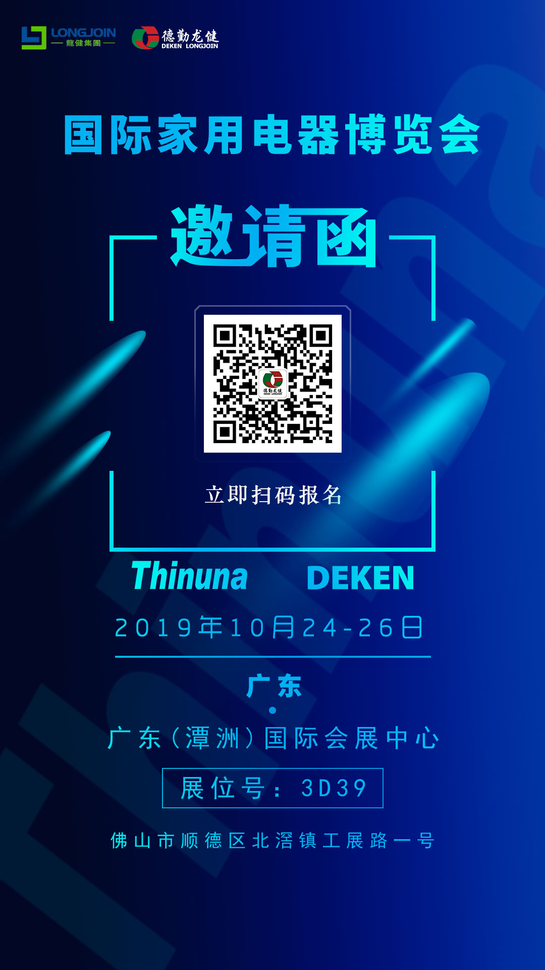 您好!非常感謝大家長(zhǎng)期以來(lái)對(duì)德勤龍健的大力支持。2019中國(guó)(廣東)國(guó)際家用電器博覽會(huì)即將開展,在此,我們真誠(chéng)地邀請(qǐng)您蒞臨我司展位參觀指導(dǎo),恭候您的到來(lái)。