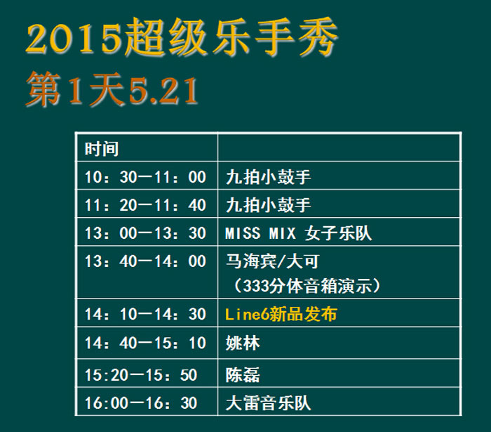 PALM 2015 北京樂器展將于2015年5月21~24日在北京國際展覽中心盛大舉行,經(jīng)過籌劃,中國演藝設(shè)備技術(shù)協(xié)會聯(lián)袂樂器合作伙伴吉他中國推出首屆“PALM展吉他中國超級樂手秀”樂器展演節(jié)目!這將是樂器展最富有表現(xiàn)力的活動(dòng),通過眾多的超級樂手展現(xiàn)樂器的魅力!這也將是PALM2015 北京樂器展的重頭戲!現(xiàn)場更有Line 6、Hartke、Arturia等國際大品牌的新品發(fā)布會,精彩不容錯(cuò)過。