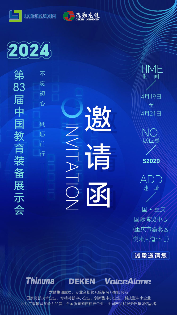 4月19日至21日,第83屆中國教育裝備展示會將在重慶國際博覽中心盛大啟幕,德勤龍健攜精心研發(fā)的創(chuàng)新產(chǎn)品誠邀您的蒞臨S2020展位,全方位展示三大系統(tǒng)方案:公共廣播系統(tǒng)方案、專業(yè)音響系統(tǒng)方案以及會議系統(tǒng)方案,以滿足不同教育場景的需求。