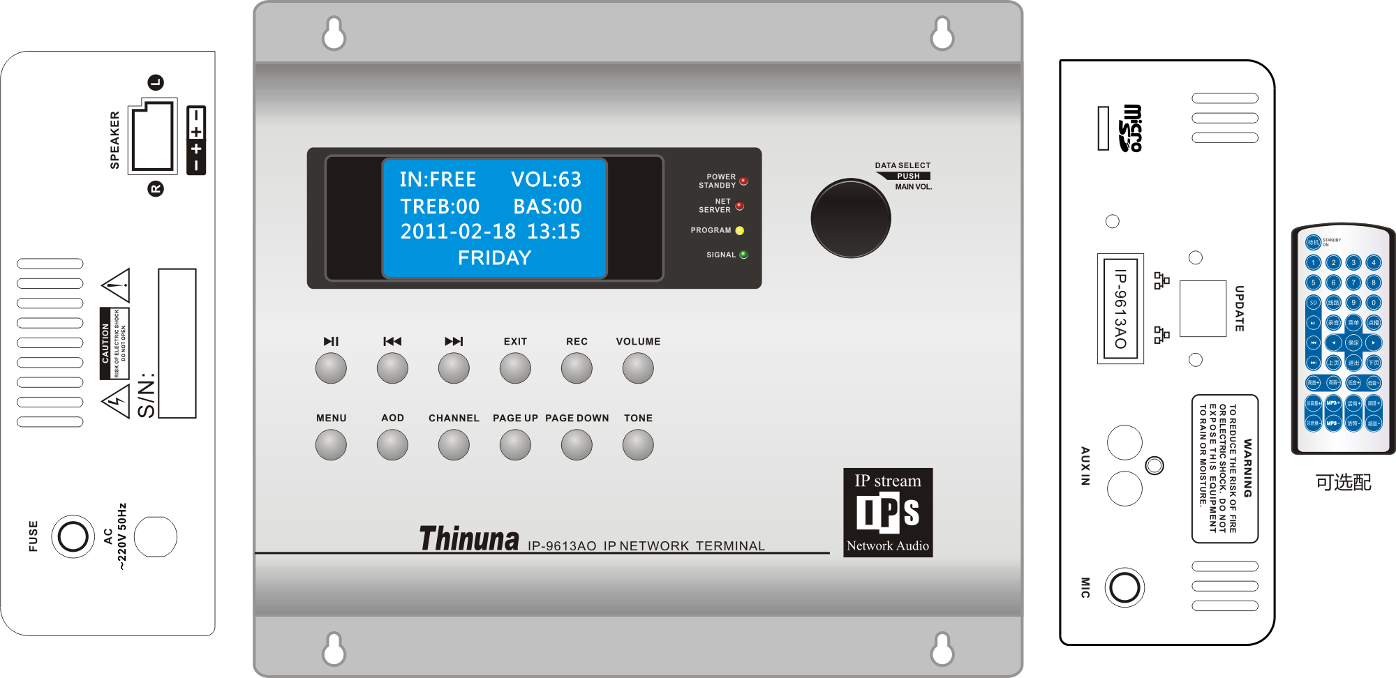 IP-9613AO可接受主控室服務(wù)器的控制,分控點(diǎn)計(jì)算機(jī)的控制,而且它還可以脫離服務(wù)器直接接受網(wǎng)絡(luò)消防矩陣、網(wǎng)絡(luò)尋呼話筒等內(nèi)部通訊對(duì)講設(shè)備的直接控制,對(duì)尋呼對(duì)講或消防等緊急任務(wù)反應(yīng)更迅速,更可靠。