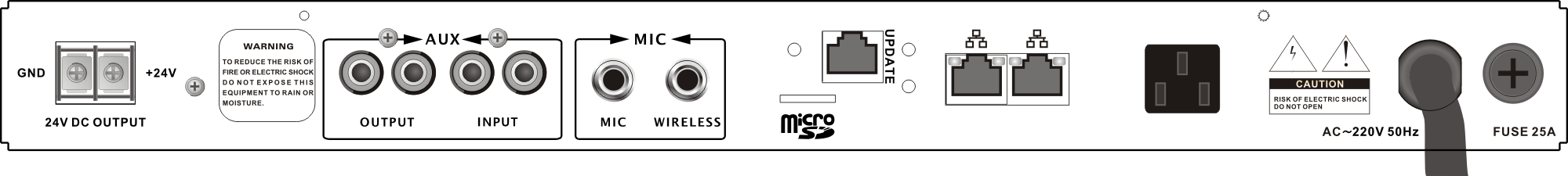 MIC話筒輸入靈敏度:80MV(桌面式話筒)150MV(無線話筒),2路話筒輸入