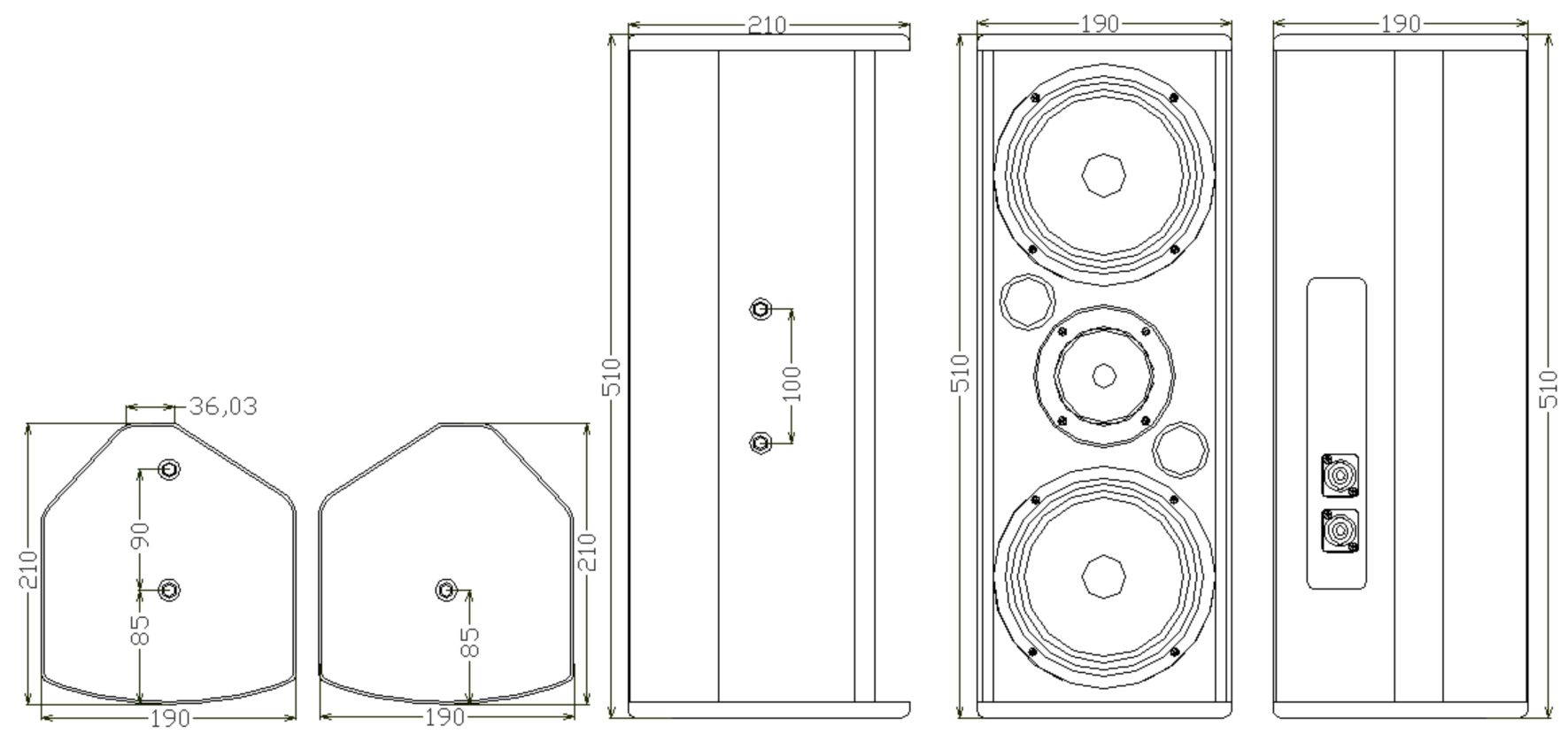換能器配置:低頻驅(qū)動(dòng)器6.5″(165mm單元35mm音圈)×2