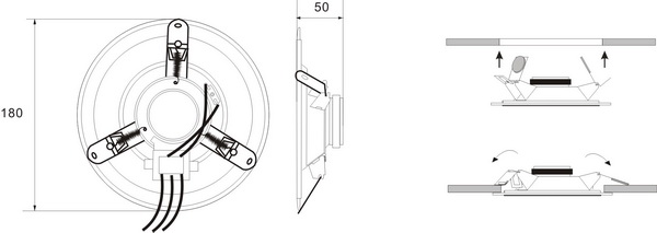 開(kāi)孔尺寸 | ?155mm, 最大天花厚度: 25mm |
