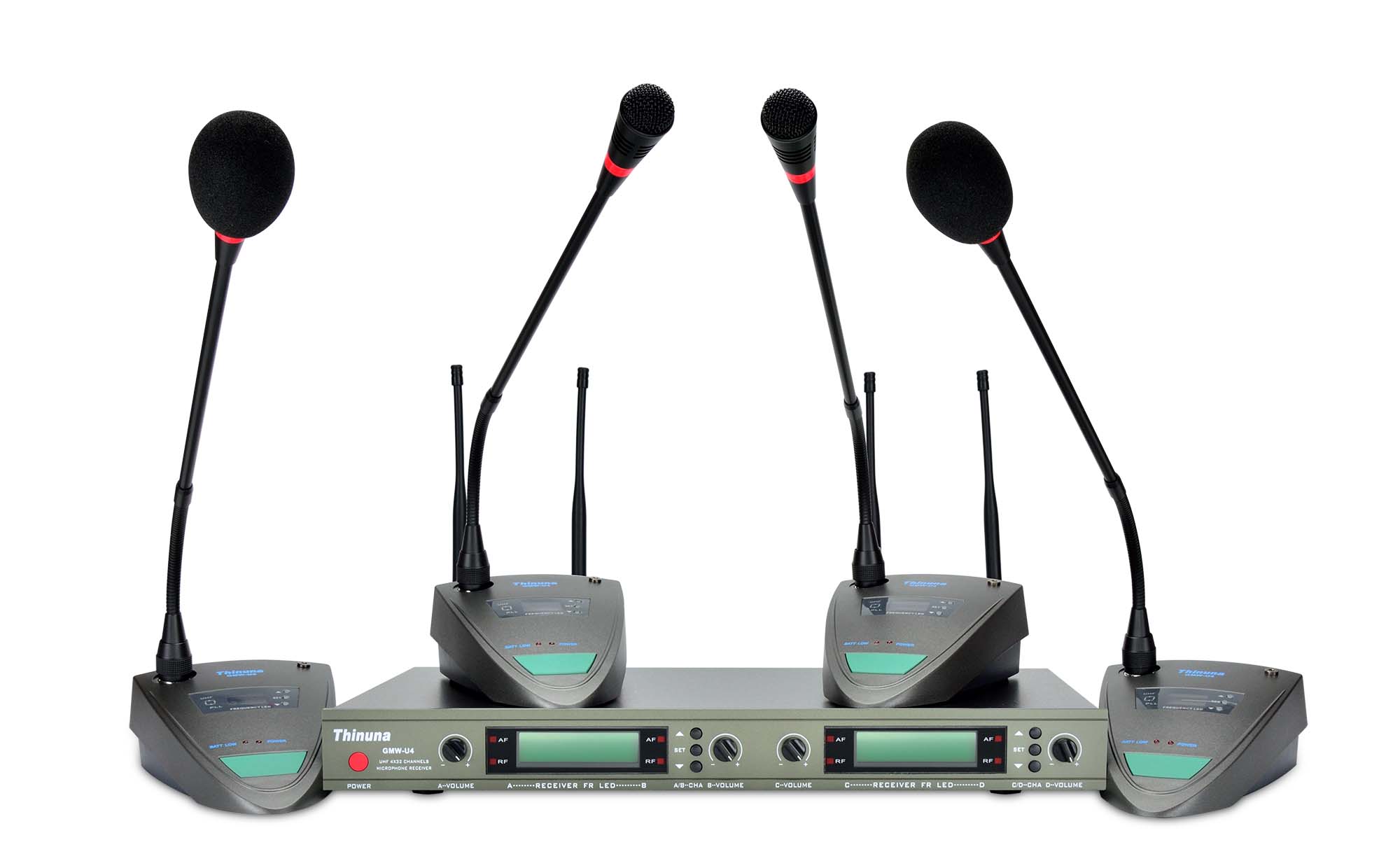 本無線鵝頸會(huì)議系統(tǒng)為4發(fā)4收設(shè)計(jì),采用了UHF(Ultra High Frequency)超高頻頻率,可以在會(huì)議場(chǎng)合和演講場(chǎng)所得到更清晰還原的聲音,超長(zhǎng)的接收距離,穩(wěn)定的信號(hào)接收,更好的抗干擾能力,其完全區(qū)別于其他廉價(jià)普通的VHF多發(fā)一收無線會(huì)議話筒,除了穩(wěn)定的接收能力外,在會(huì)議功能上的人性化設(shè)計(jì)如,輕觸開關(guān),發(fā)言單元指示光環(huán),低功耗的發(fā)射功耗等更加保持這款產(chǎn)品在會(huì)議場(chǎng)合的優(yōu)勢(shì),是小型會(huì)議,移動(dòng)場(chǎng)合的不二之選。