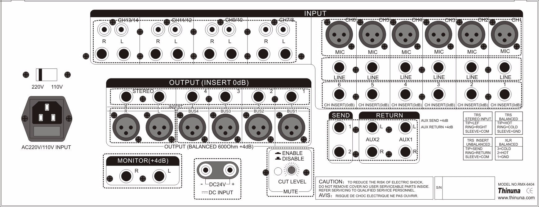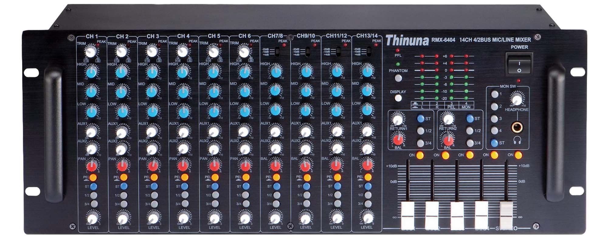 輸入部分:6 路單聲道輸入;4 路立體聲輸入