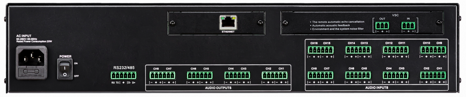 功能強(qiáng)大的AUX通道具有PEQ均衡處理、壓縮器/限幅功能,自動(dòng)混音處理功能:混音的閥值、幅度、啟動(dòng)時(shí)間、恢復(fù)時(shí)間等參數(shù)連續(xù)可調(diào)。以及自動(dòng)攝像跟蹤觸發(fā)功能:觸發(fā)的閥值、幅度、啟動(dòng)時(shí)間、恢復(fù)時(shí)間等參數(shù)連續(xù)可調(diào)。同時(shí)具有AEC自動(dòng)回聲消除和背景降噪功能,其可有效降低在遠(yuǎn)程會(huì)議環(huán)境中由于話筒的二次拾音產(chǎn)生的聲學(xué)回聲問(wèn)題,同時(shí)還可以有效消除現(xiàn)場(chǎng)話筒的反饋以及空調(diào)、風(fēng)扇等有的環(huán)境噪聲??杀WC在任何環(huán)境中都可以實(shí)現(xiàn)無(wú)噪音、高清晰的現(xiàn)場(chǎng)音頻會(huì)議及遠(yuǎn)程視頻會(huì)議。