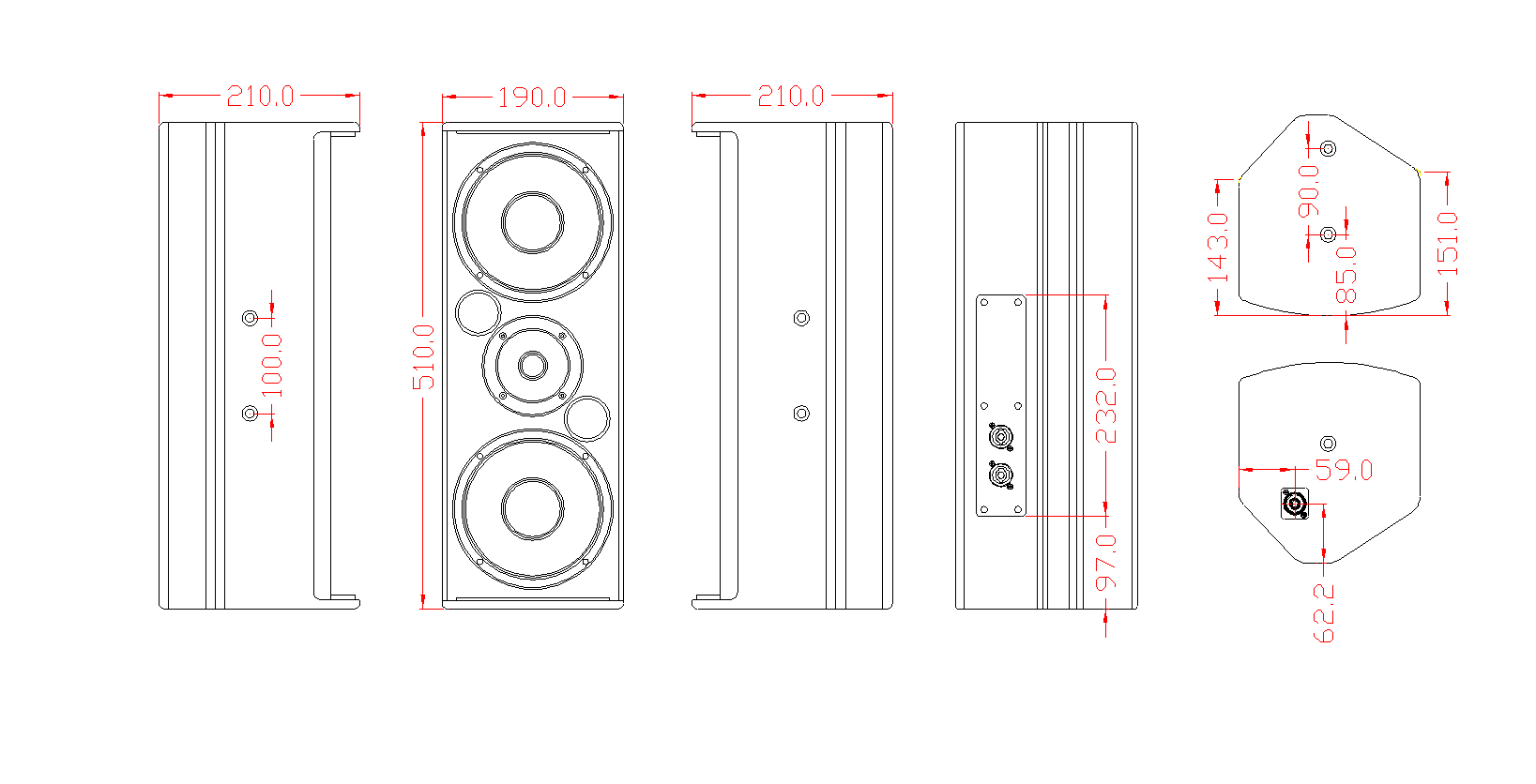 換能器配置:低頻驅(qū)動器6.5″(165mm單元35mm音圈)×2