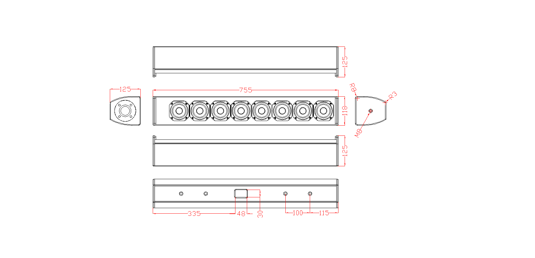 換能器配置:全頻驅(qū)動器3″(75mm全頻單元20mm音圈)×8