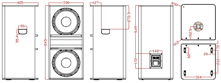 箱體材質(zhì):15mm(0.6″)+18mm(0.7″)夾板