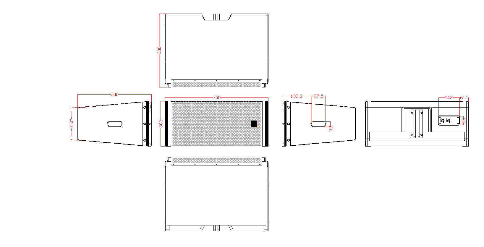 換能器配置:低頻驅(qū)動(dòng)器 10″(250mm單元65 mm音圈)×2
