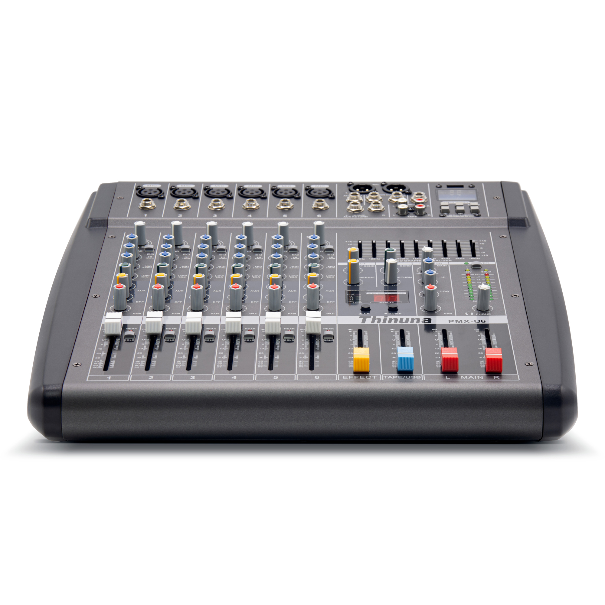 PMX-U系列立體聲調(diào)音臺是帶功率放大器的高品質(zhì)調(diào)音臺,提供6路、8路、12路、16路四種型號。內(nèi)置了USB播放器(MP3播放及錄音),藍(lán)牙接收模塊,16位的真正數(shù)字效果器。整個系列同樣具備超大動態(tài),超低底噪的特點(diǎn)。具備高效能雙通道專業(yè)功放,只要輸入音源,連接專業(yè)音箱,不需要額外的功放設(shè)備。節(jié)省空間,系統(tǒng)更簡化,為用戶提供更方便、快捷、靈活的使用方式。是婚慶、商業(yè)會議,多功能廳,流動演出,移動擴(kuò)聲,樂隊(duì)演出,現(xiàn)場表演等各種簡易系統(tǒng)的佳選。