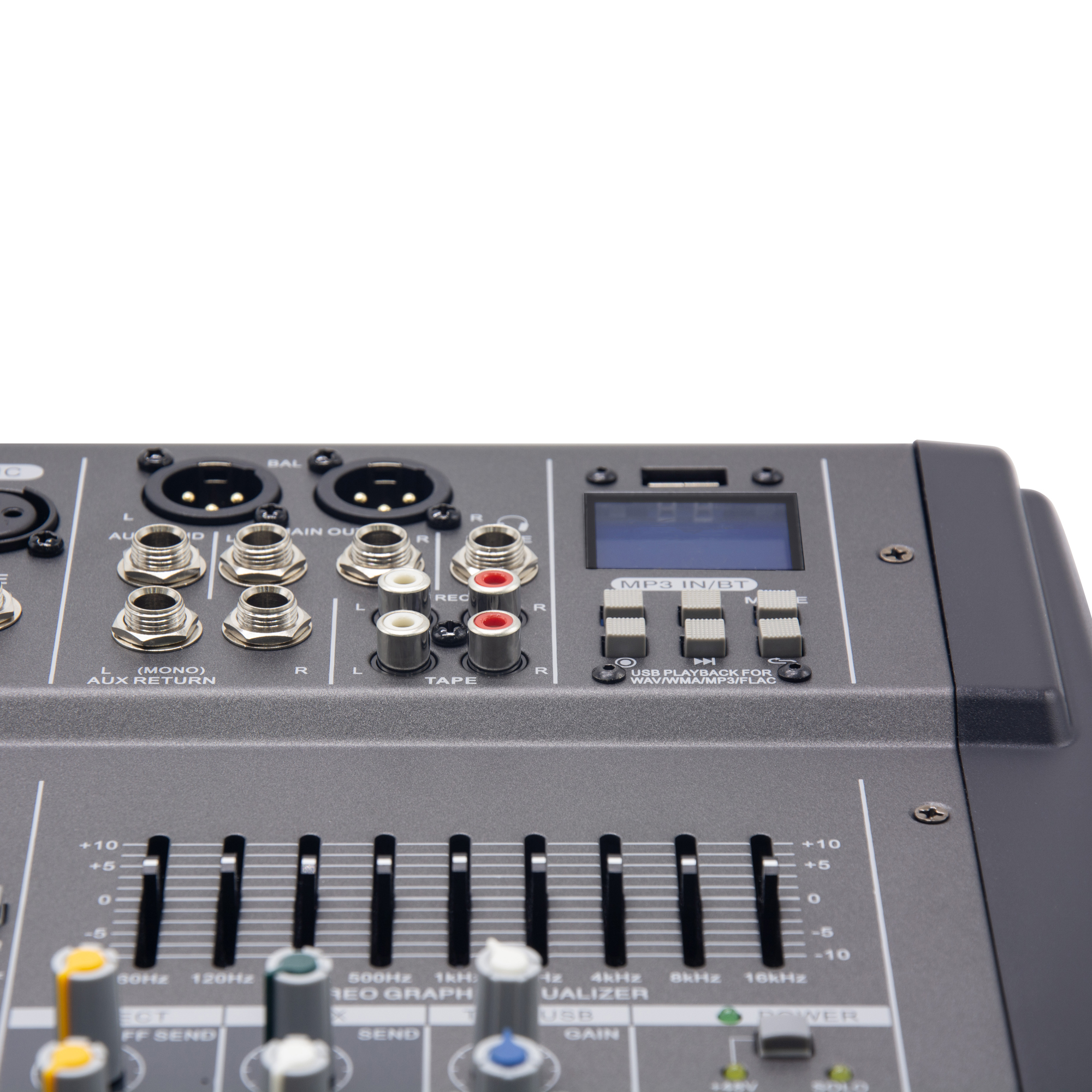 總輸出:9段圖示均衡(60Hz, 120Hz,250Hz, 500Hz, 1kHz, 2kHz, 4kHz, 8kHz,16kHz)