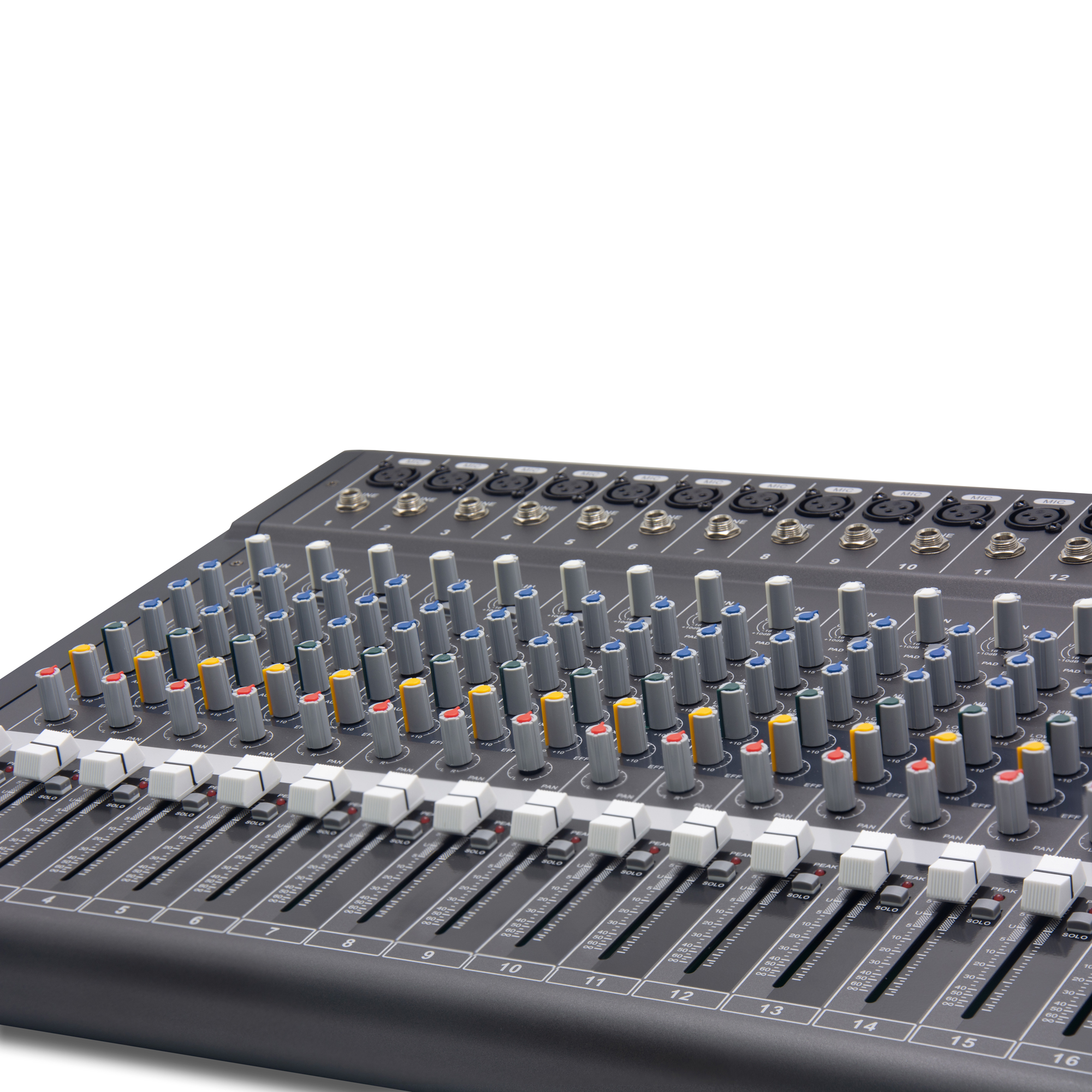 所有輸入通道帶3段均衡調(diào)節(jié)(高音,中音,低音)
