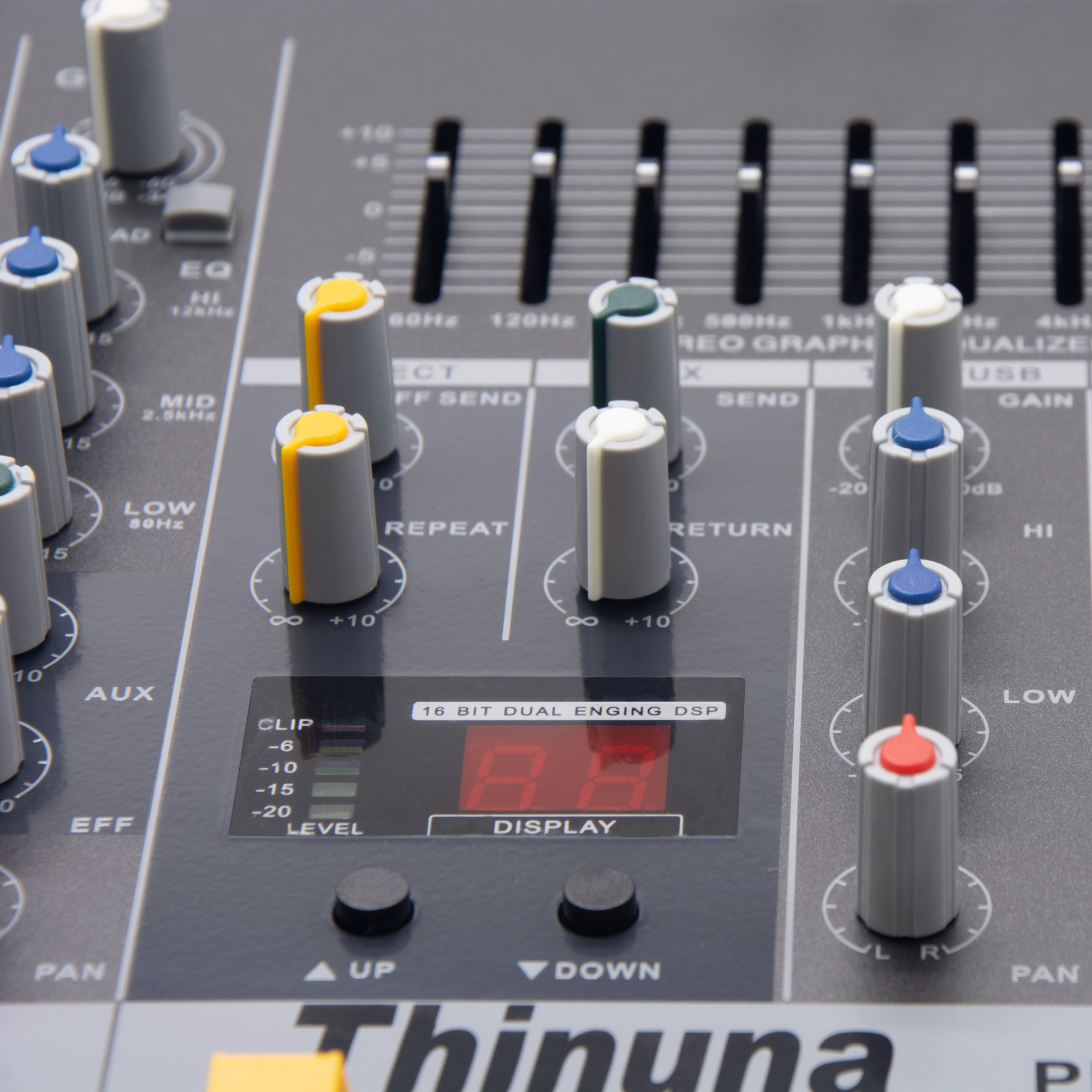 PMX-U系列立體聲調(diào)音臺(tái)是帶功率放大器的高品質(zhì)調(diào)音臺(tái),提供6路、8路、12路、16路四種型號(hào)。內(nèi)置了USB播放器(MP3播放及錄音),藍(lán)牙接收模塊,16位的真正數(shù)字效果器。整個(gè)系列同樣具備超大動(dòng)態(tài),超低底噪的特點(diǎn)。具備高效能雙通道專業(yè)功放,只要輸入音源,連接專業(yè)音箱,不需要額外的功放設(shè)備。節(jié)省空間,系統(tǒng)更簡(jiǎn)化,為用戶提供更方便、快捷、靈活的使用方式。是婚慶、商業(yè)會(huì)議,多功能廳,流動(dòng)演出,移動(dòng)擴(kuò)聲,樂隊(duì)演出,現(xiàn)場(chǎng)表演等各種簡(jiǎn)易系統(tǒng)的佳選。
