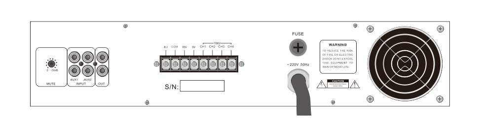 100V/70V定壓輸出,4-16歐定阻輸出;