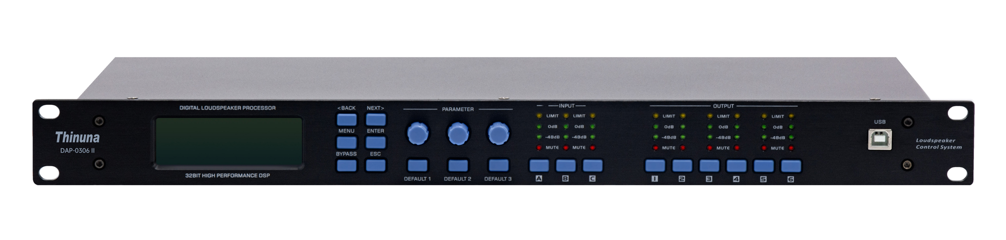 壓縮/限幅器設(shè)置:門限值:-20dBu-+22dBu、步距為1dBu;壓縮比:1:1-INF:響應(yīng)時(shí)間:1mS-100mS,釋放時(shí)間:2X-32X