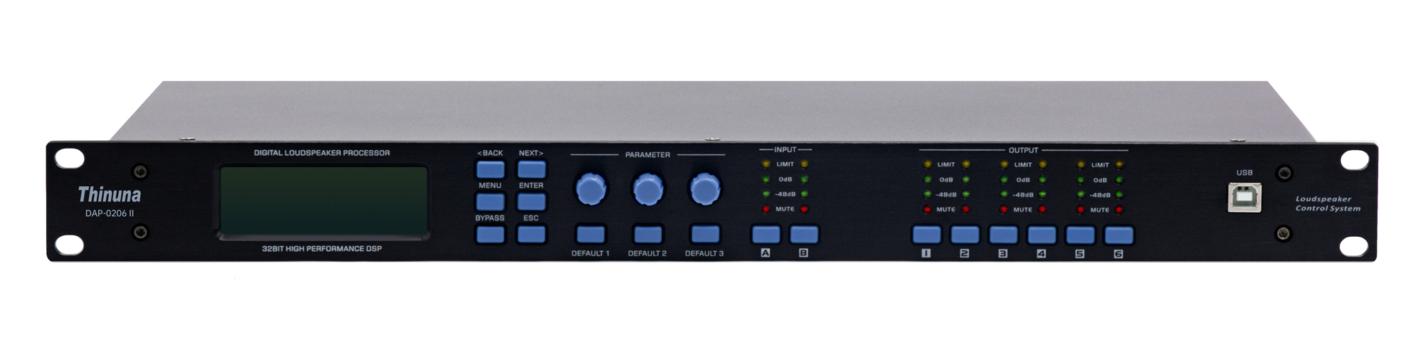 壓縮/限幅器設(shè)置:門(mén)限值:-20dBu-+22dBu、步距為1dBu;壓縮比:1:1-INF:響應(yīng)時(shí)間:1mS-100mS,釋放時(shí)間:2X-32X