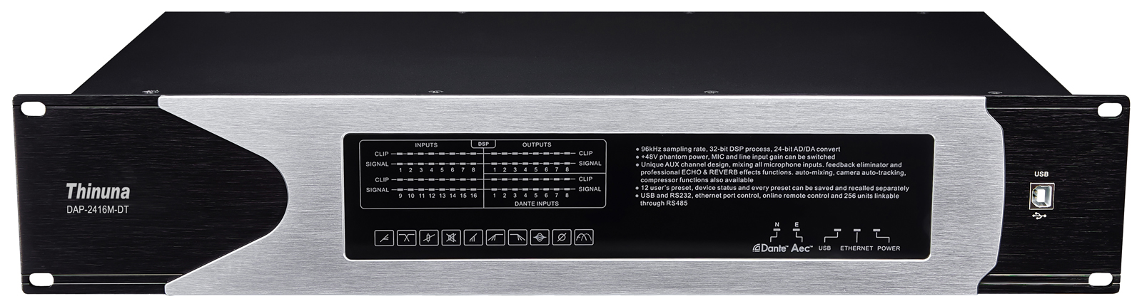 32位DSP芯片處理,96kHz采樣率,24 bit AD/DA轉(zhuǎn)換。