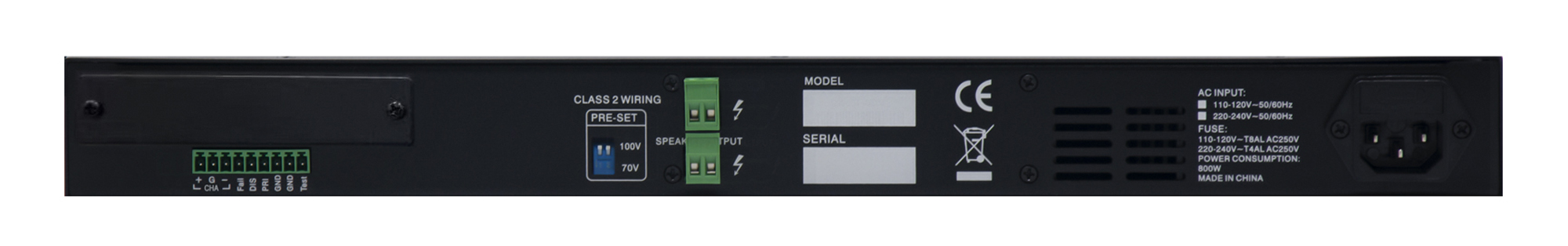 控制 | 前面板:交流電開關,每個通道的輸入電平控制 后面板:70V/100V選擇器 |