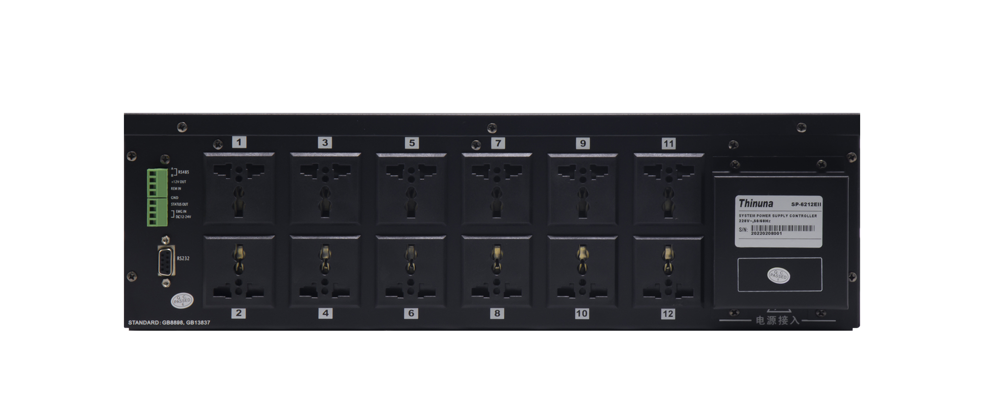 輸出:12路:AC220V、10A,萬能插座