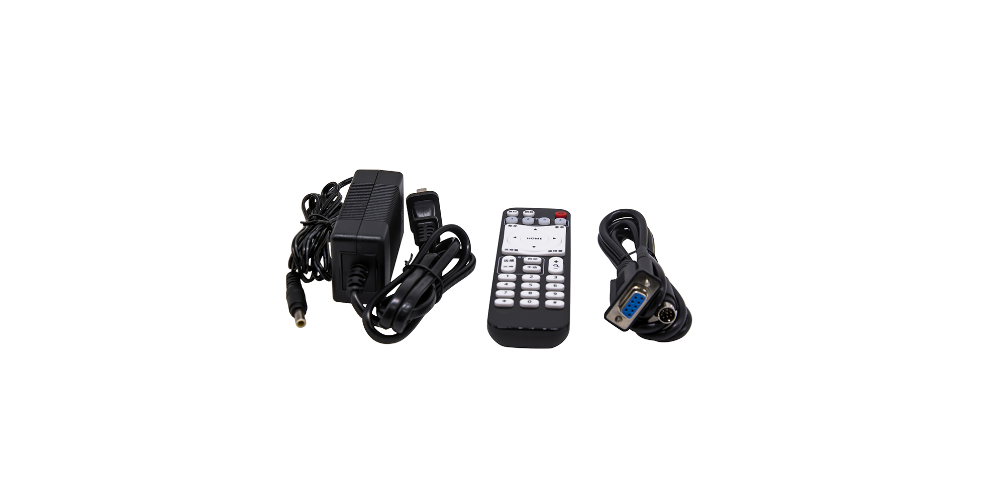 隨機附件:電源適配器、RS232轉(zhuǎn)接線、2位RS485端子、遙控器、說明書、保修卡