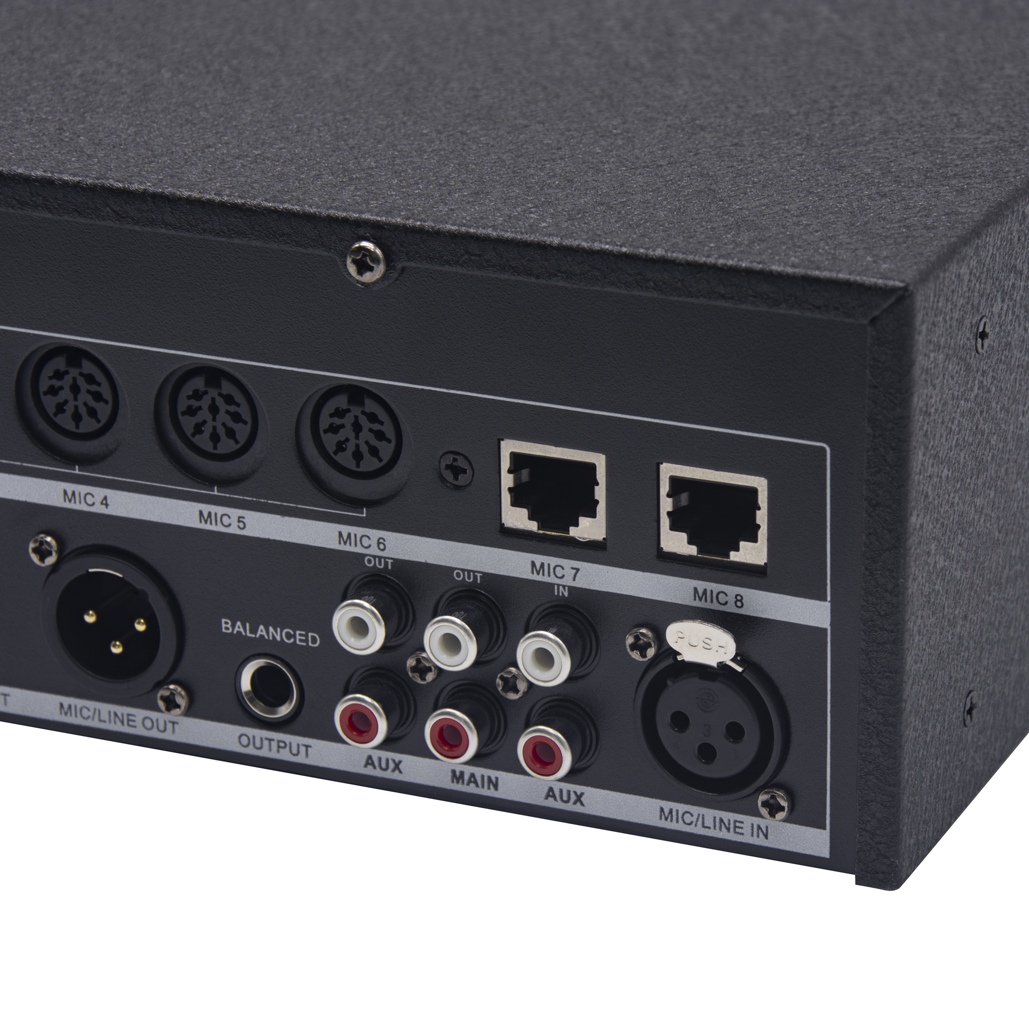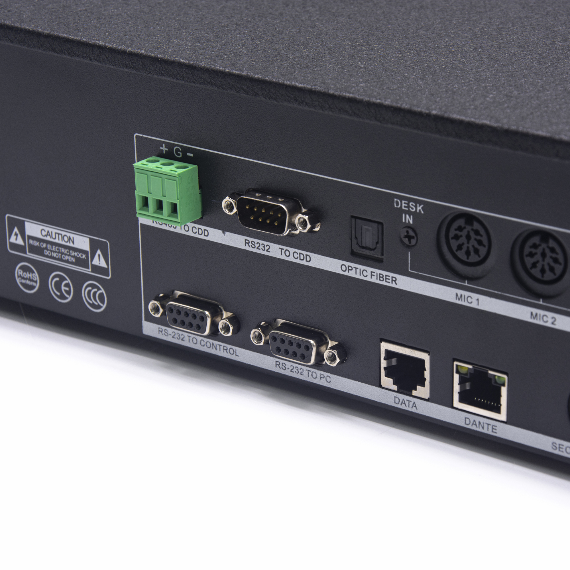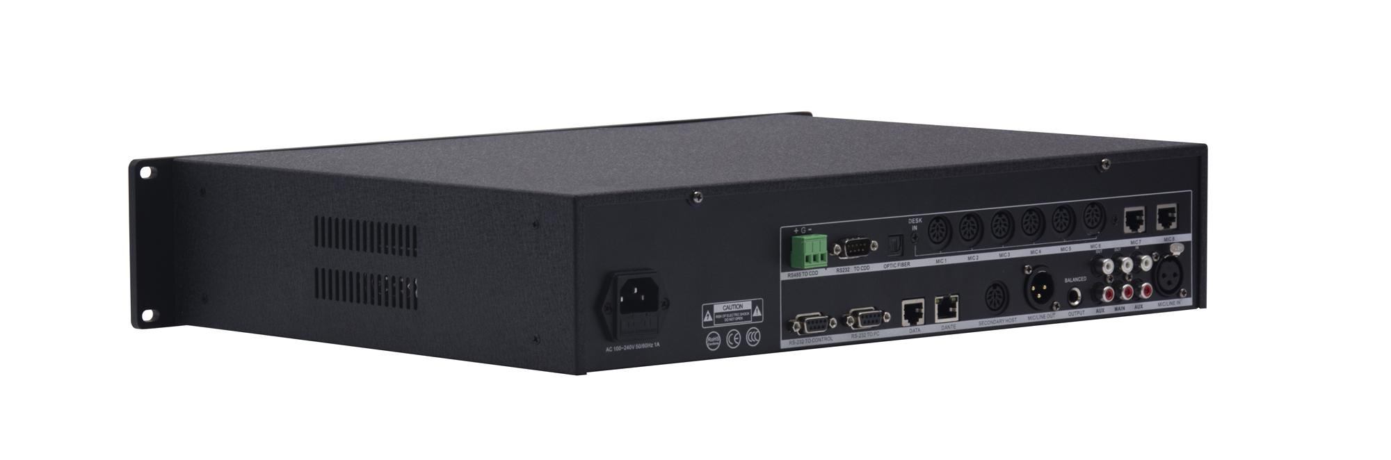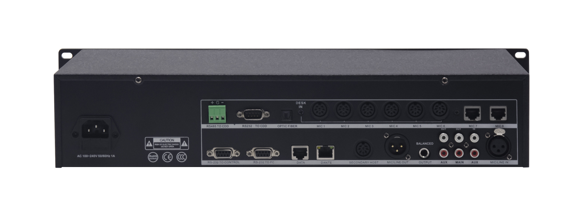 話筒單元接口:圓頭DIN-6插座接口x6 和 RJ45網(wǎng)口x2