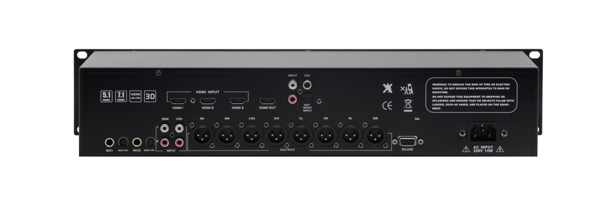 雙DSP設(shè)計7.1輸出高性能影院解碼效果器。