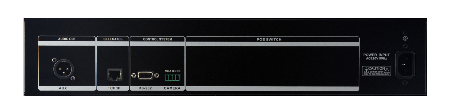 25、一路 RS232 控制接口,一路設(shè)置和控制主機(jī)所有功能;一路 RS-485 攝像跟蹤接口,最大支持 64 臺(tái)會(huì)議攝像機(jī)控制。