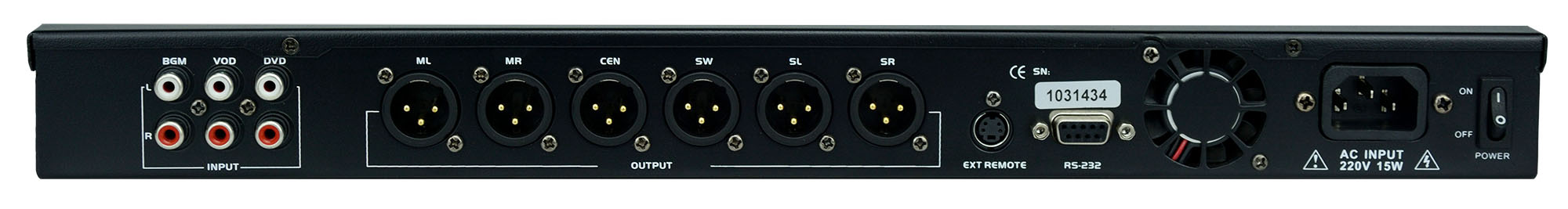 具備3組模擬音樂(lè)輸入,2組數(shù)字信號(hào)輸入(同軸,光纖),8路輸出(左、右、中置、超低、左右環(huán)繞、錄音輸出)