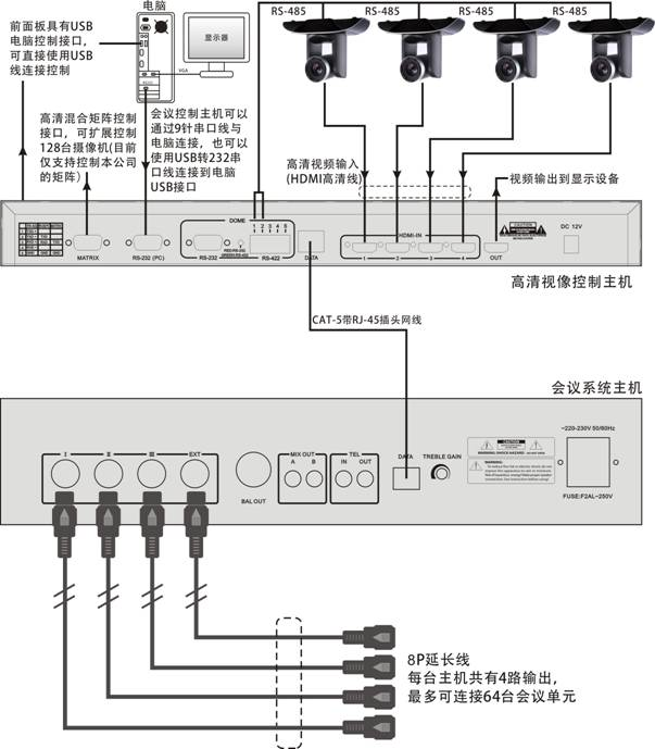 功能特點:內(nèi)置4進(jìn)4出高清HDMI視頻信號自動切換矩陣;(支持4K)具有B型USB接口與電腦通訊,方便快捷;通訊支持RS232中控控制,且具有雙向收發(fā)碼功能,與中控系統(tǒng)實現(xiàn)完美配合;攝像機(jī)數(shù)量超過4臺時,可通過專用HD Matrix接口與本公司的混合矩陣通訊,可實現(xiàn)高清球自動切換跟蹤功能;單機(jī)支持多個攝像機(jī)位置跟蹤控制點:Pelco-D協(xié)議250個點,VISCA協(xié)議128個點;支持兩種常用高速云球