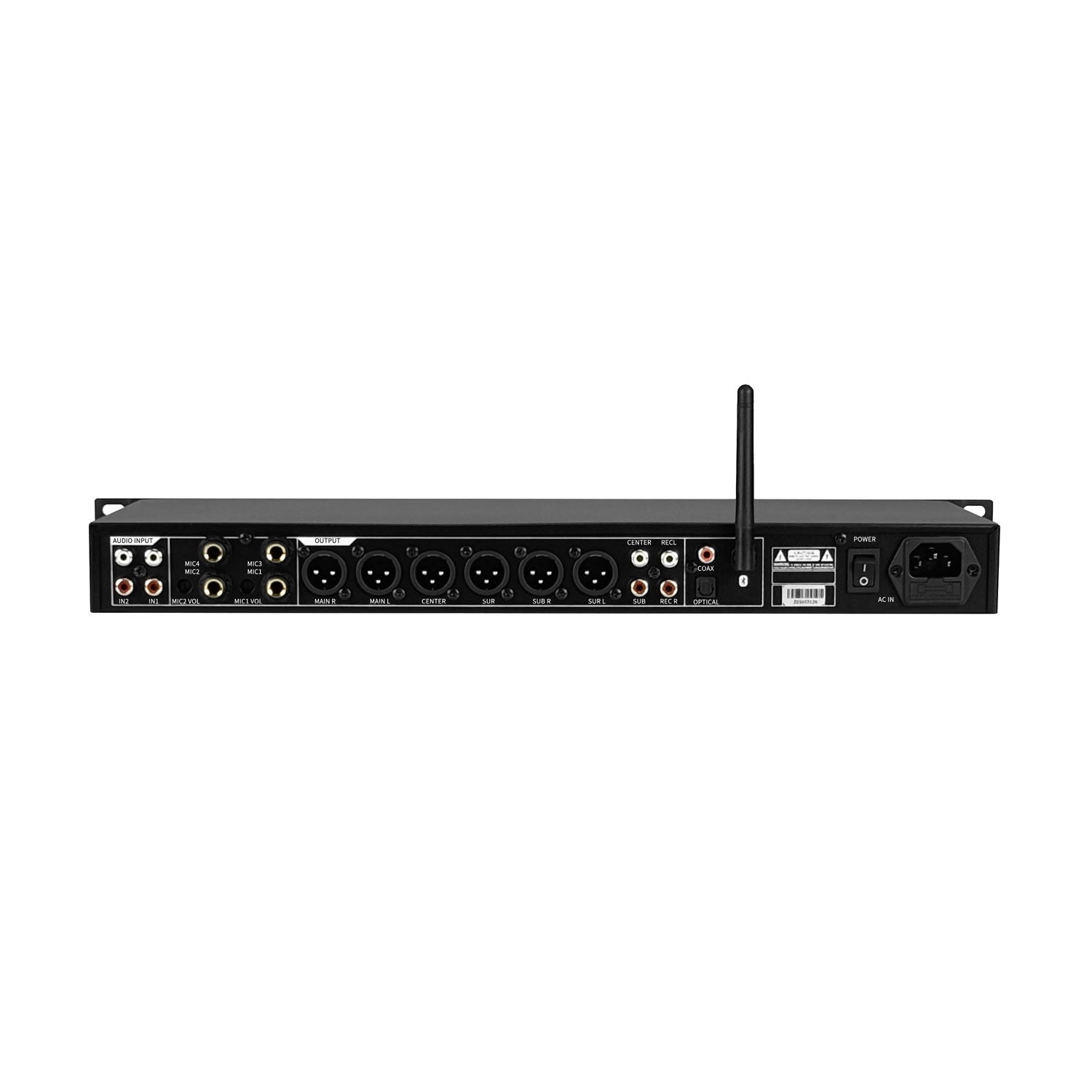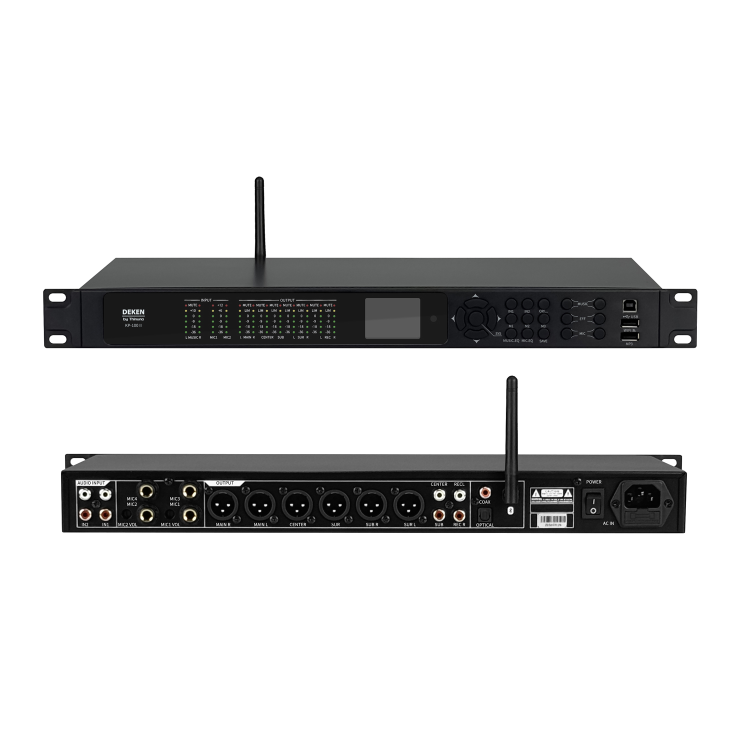 音樂部分:10段參量均衡;正負(fù)7階變調(diào),兩組RCA模擬輸入+藍(lán)牙+U盤+光纖+同軸輸入,自動(dòng)切換。