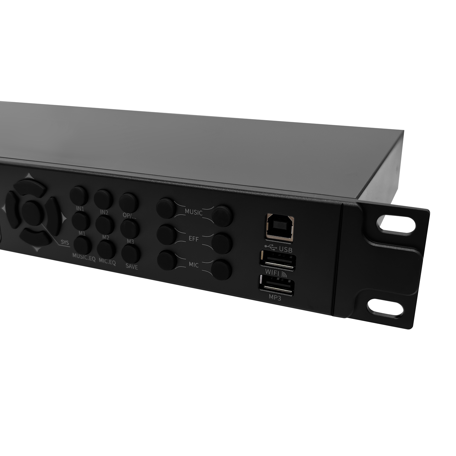 面板直接簡潔,自動(dòng)音源選擇,帶藍(lán)牙、U盤、光纖同軸輸入,變調(diào),8通道獨(dú)立調(diào)節(jié);整機(jī)獨(dú)有混響技術(shù),強(qiáng)大的包圍感、修飾度,讓你唱歌無憂。免驅(qū)式USB直連,免驅(qū)式WIFI無線控制,解決一切鏈接問題;軟件聯(lián)機(jī)密碼功能;軟件獨(dú)有的頻譜分析功能,人性化的設(shè)置軟件界面,更符合操作需求。