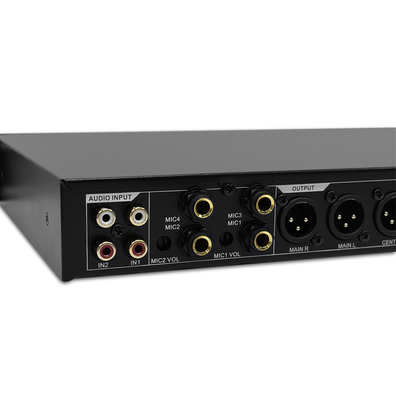 話筒部分:帶數(shù)字噪聲門,話筒輸入壓限功能;4級(jí)嘯叫抑制,;20段參量均衡,專業(yè)高低通壓限。