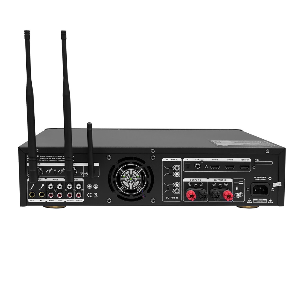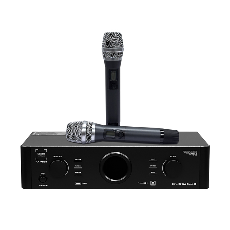KA II三合一卡拉OK專(zhuān)業(yè)功放,采用方便直觀的彩色液晶,獨(dú)特外觀設(shè)計(jì),整個(gè)前部結(jié)構(gòu)成立體的三維形態(tài)空間,給人強(qiáng)烈的視覺(jué)動(dòng)感,采用8核56bitDSP音頻處理器。56bitMAC操作(800M MAC/sec)矢量處理,雙精度指令,采用24bit,192kHz音頻編譯碼器,114dB動(dòng)態(tài)范圍,-100dBTHD+N。采樣頻率48K/24Bit、超低的延時(shí),完美的聲道靜音設(shè)計(jì)、支持外部APP調(diào)試,集成無(wú)線(xiàn)話(huà)筒。寬工作電源電壓160V~240AVC,全天候的保護(hù)解決電壓浮動(dòng)帶來(lái)的設(shè)備不工作和損壞。適用于:私人會(huì)所,家庭KTV等場(chǎng)所