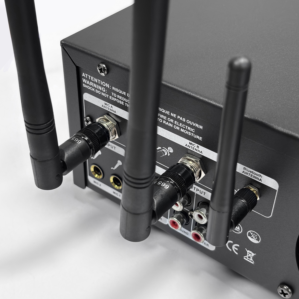 6. 可獨(dú)立調(diào)節(jié)的雙路話(huà)筒通道。