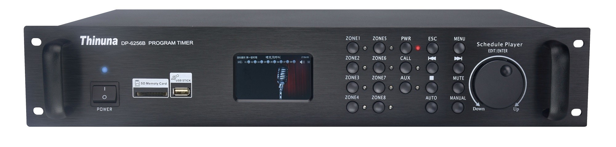 彩屏節(jié)目定時(shí)器屬于定時(shí)管理控制器,可進(jìn)行微電腦控制,單鍵飛梭,圖形化界面,多級(jí)菜單操作模式,簡(jiǎn)單易懂;并且主機(jī)具有簡(jiǎn)體中文,繁體中文,英文三種語(yǔ)言菜單任意切換,真彩色3.0英寸TFT顯示器,字幕顯示,讓您操作起來(lái)一目了然??蛇M(jìn)行定時(shí)播放內(nèi)存和SD或USB卡節(jié)目, 8路功率分區(qū)定時(shí)輸出,3路定時(shí)電源輸出口;并且支持電腦聯(lián)機(jī)編輯定時(shí)程序,全自動(dòng)電源、廣播分區(qū)管理。