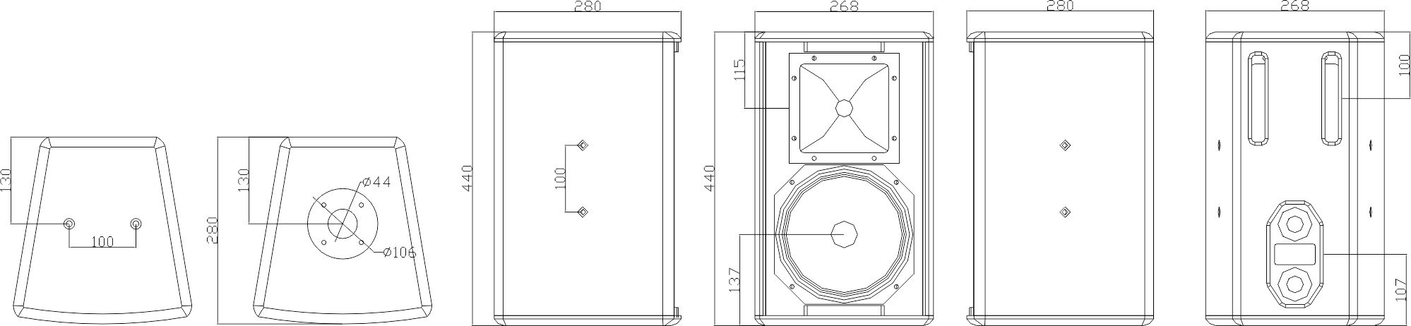 KS系列外觀穩(wěn)重、線條流暢、工藝精湛。箱體采用厚重的MDF板打造,杜絕音染;先進的CNC數(shù)控機床精確裁切,將箱體漏損降至極限;內(nèi)嵌式人體工程學(xué)把手,堅固的箱體外飾高強度耐磨環(huán)保啞光細顆粒油漆涂層,具有防腐及防擦傷的作用,方便搬運和安裝。